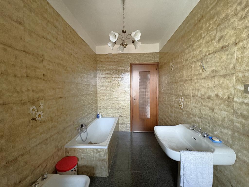 L’abitazione accoglie con una cucina abitabile e un ampio salone, ambienti pensati per la vita quotidiana e per momenti di convivialità. La zona notte ospita tre camere da letto di generose dimensioni e due servizi, uno dotato di vasca e l’altro di doccia, offrendo praticità e comodità per tutta la famiglia.